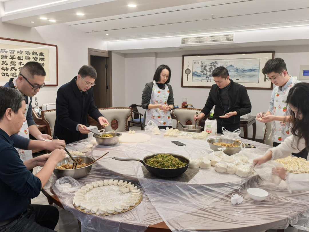 对于许多同事而言,厨房的烟火气或许是平日里难得的风景。但今天,事务所的一角俨然变成了温馨的家庭厨房。几张长桌拼接在一起,上面井然有序地铺开了阵势:新鲜采购的蔬菜还带着水珠,各色馅料散发着质朴的香气,柔软的面饼静待着被赋予新的形态,这简单的筹备,承载的正是对传统节日的尊重,以及对每一次相聚的珍视。