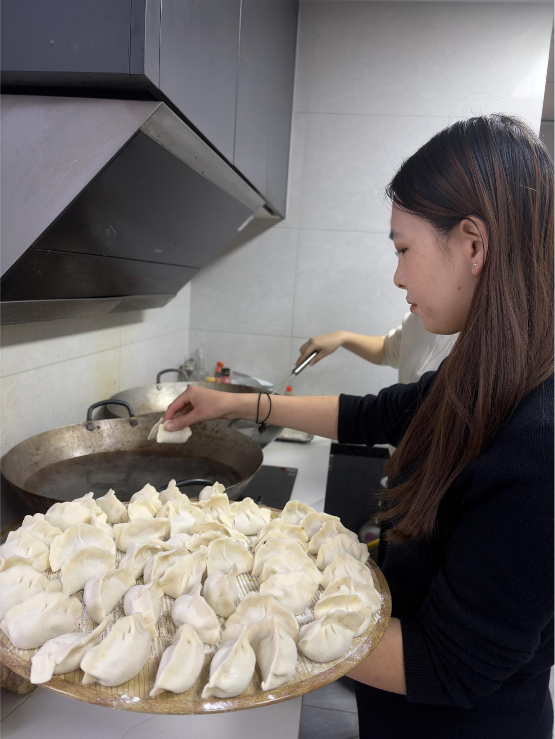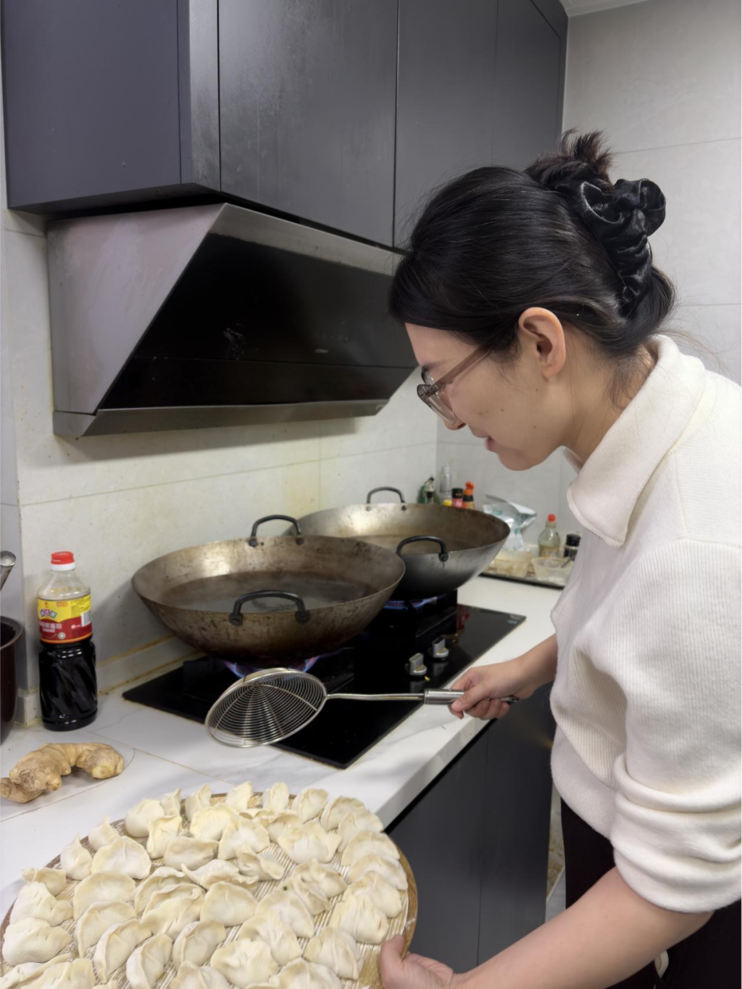 图为煮饺子的温馨画面
