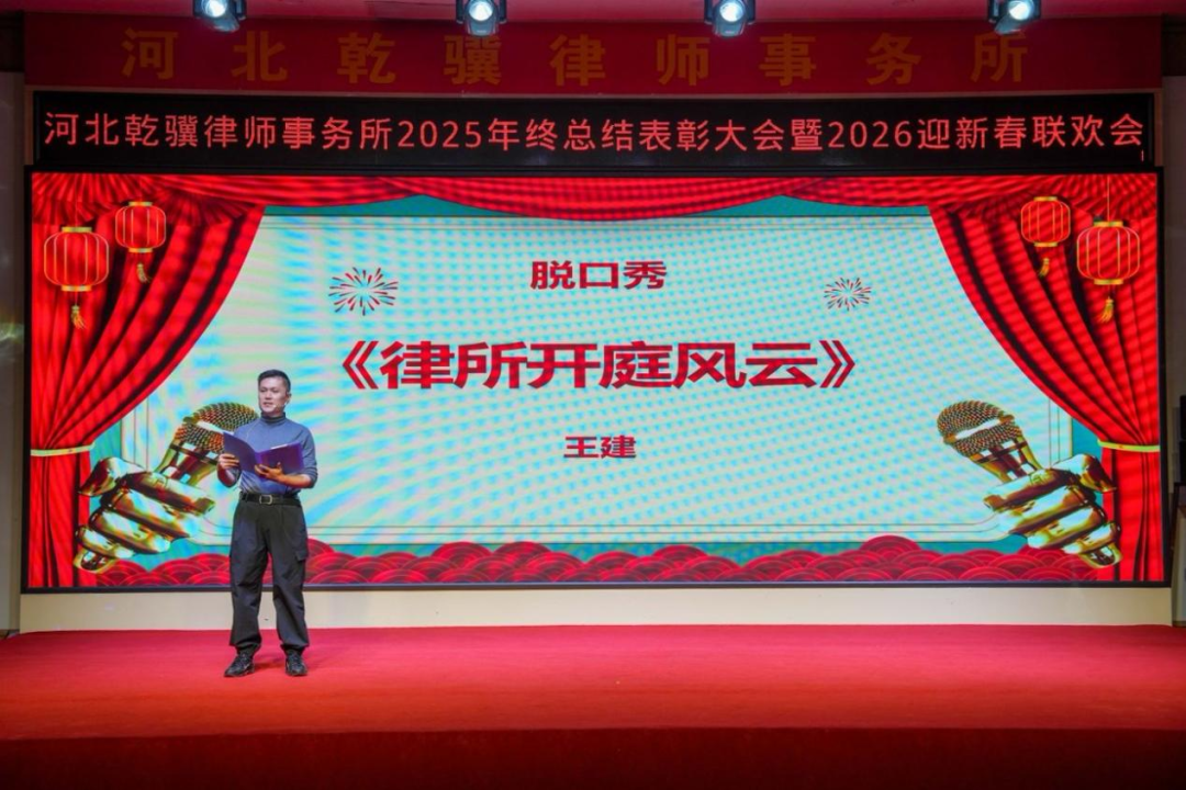 岁序更替,华章日新。2026年2月8日,河北乾骥律师事务所于亨伦大酒店隆重举办“乾行逢骥-骥跃乾程”——2025年度总结表彰大会暨2026年迎新春联欢会。全体乾骥家人欢聚一堂,共叙奋斗历程,同绘发展蓝图。本次大会共有四项议程,由管委会副主任陈曦主持,总所全体律师及邯郸分所、沧州任丘分所、保定分所以及合作单位阜城法律服务所的负责人出席本次会议。