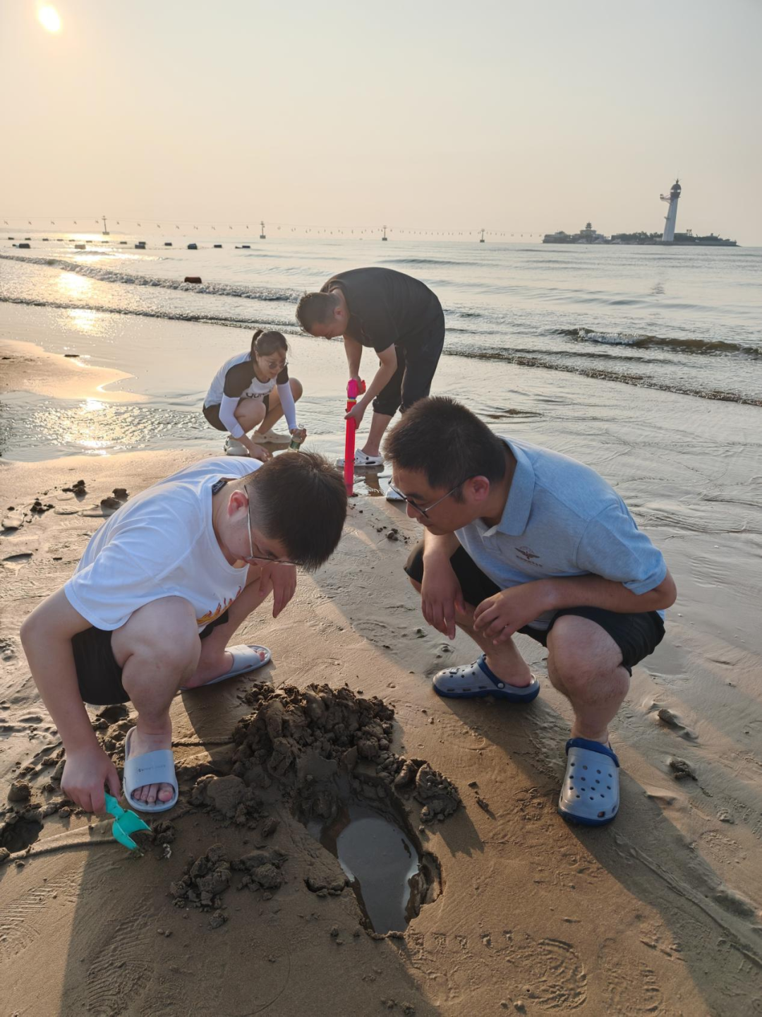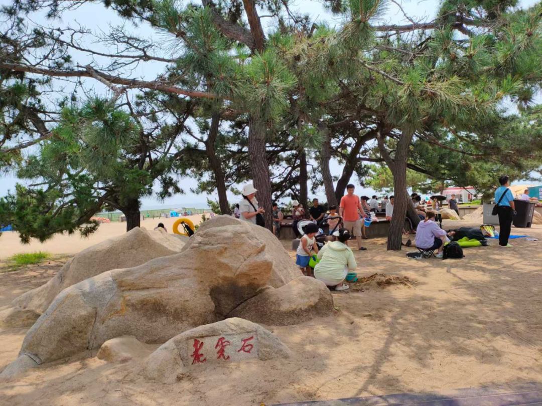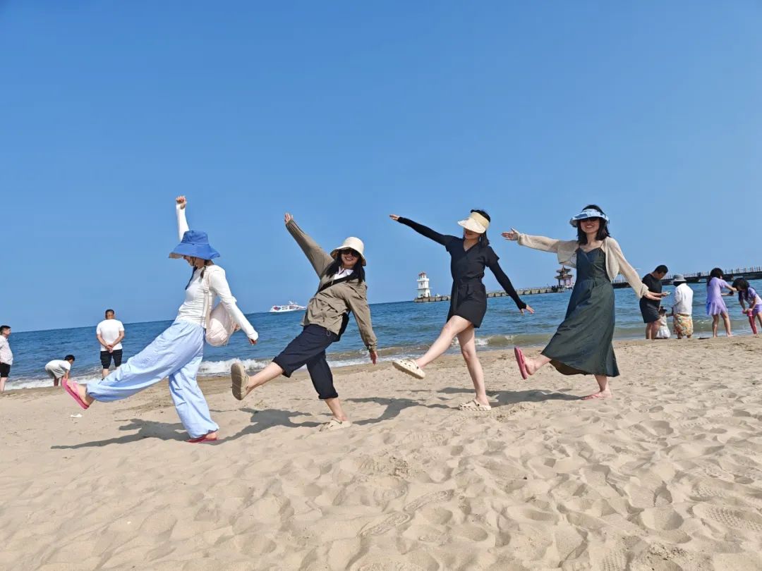 然后,我们前往【老虎石海上公园】。这里的礁石群状似猛虎,形态各异,仿佛在诉说着古老的故事。沙滩细腻柔软,海水清澈见底,大家赤脚漫步沙滩,尽情享受着海滨的悠闲时光。有的同事在沙滩上堆沙堡,有的在海水中嬉戏,还有的在礁石间拍照留念。午后温暖的阳光洒在身上,大家沉浸在这份宁静与美好之中,忘却了工作的疲惫。