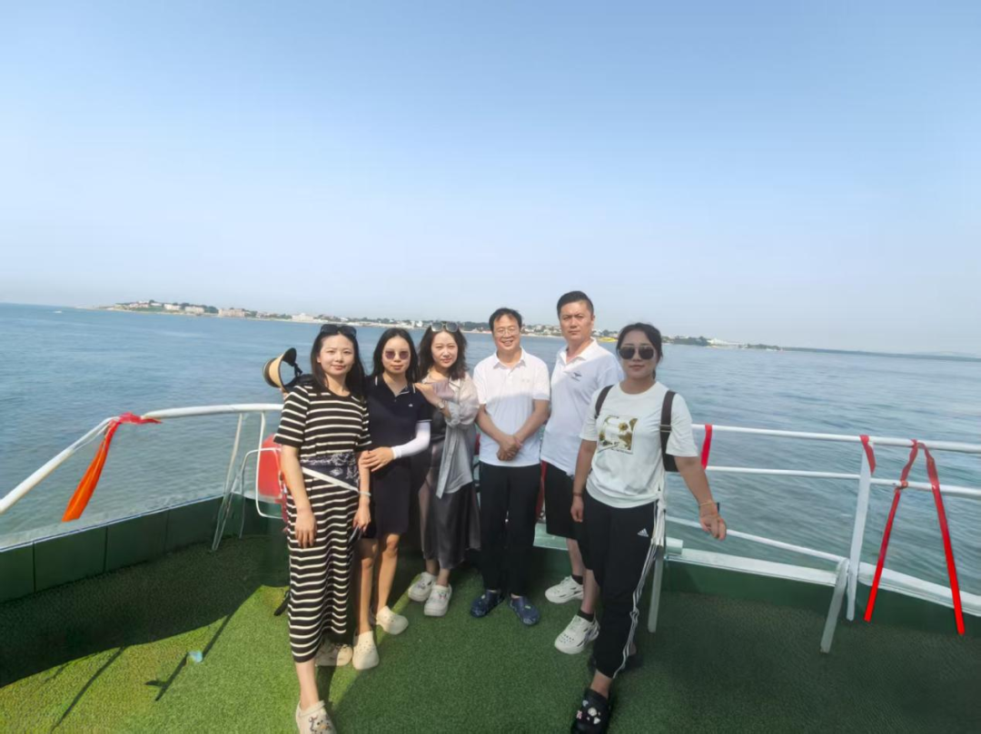清晨七点,我们在享用完早餐后,前往东山码头。八点,我们乘坐游船从码头出发,迎着朝阳驶向蔚蓝深处。海风拂面,波光粼粼的海面上,秦皇岛港的巨轮穿梭往来,构成了一幅壮丽的海上画卷。大家站在甲板上,欣赏着海天一色的美景,心旷神怡。四十分钟的出海之旅,不仅让大家领略了大海的壮阔,也为大家带来了无尽的欢乐。